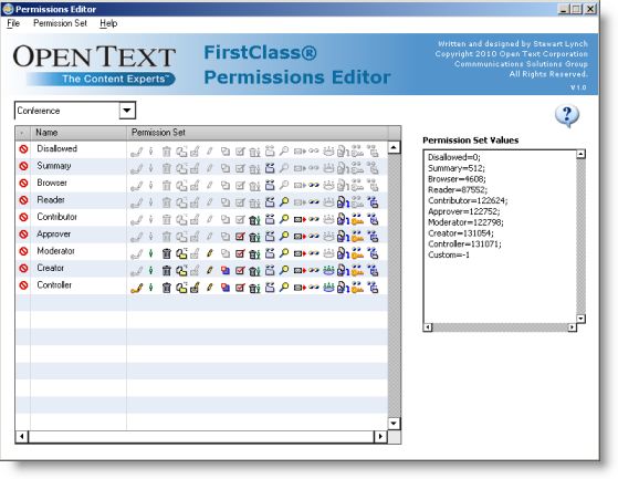 If you are not satisfied with the standard set of permissions that are in the FirstClass Client, you can modify them to meet your own needs. This application will assist you in that process.