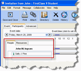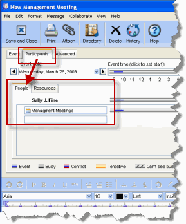 (Add Participant) permission, the event is created in your personal calendar as a message and the group or resource/location calendar is automatically added to the participants list.