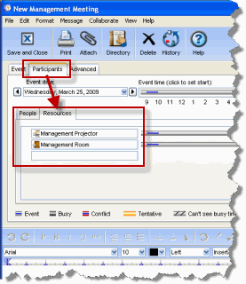 Can schedule an event in this calendar either by directly entering the event or by using the Participants tab and entering the name or group calendar in the People Tab or the Location or Resource calendar in the Resources tab |